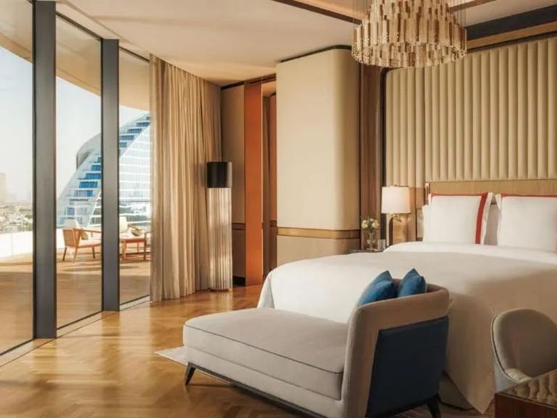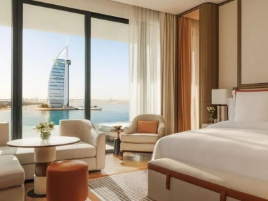 Площадь номера: 67 кв. м., вид: на Jumeirah Burj Al Arab и на Персидский залив, кровати: 1 кровать king-size или две отдельные кровати + одна диван-кровать, размещение: 2 взрослых и 2 детей до 12 лет или 3 взрослых, частная терраса, кофе-машина Nespresso , фен Dyson , персональный мини-бар , Smart TV 65”, Акустическая система Bang and Olufsen