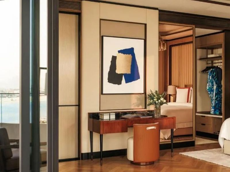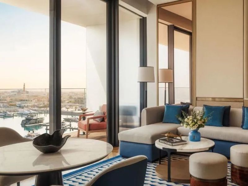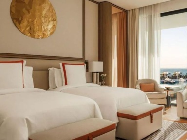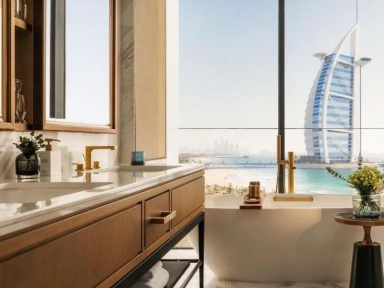 Семейный номер, площадь номера: 77 кв. м., вид: на Jumeirah Burj Al Arab, на Персидский залив и на Marina Skyline, кровати: 1 кровать king-size + одна диван-кровать + кровать-трансформер, размещение: 2 взрослых и 2 детей до 12 лет или 3 взрослых, кофе-машина Nespresso , фен Dyson , персональный мини-бар , Smart TV 65”, Акустическая система Bang and Olufsen