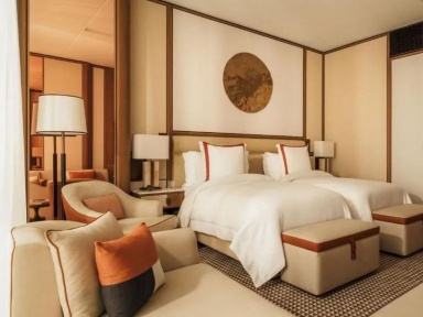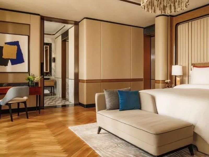Люкс площадью 110 кв. м., вид: на панораму города и на набережную, кровати: 1 кровать king-size + одна диван-кровать, размещение: 2 взрослых и 2 детей до 12 лет или 3 взрослых, кофе-машина Nespresso , фен Dyson , персональный мини-бар , Smart TV 65”, Акустическая система Bang and Olufsen