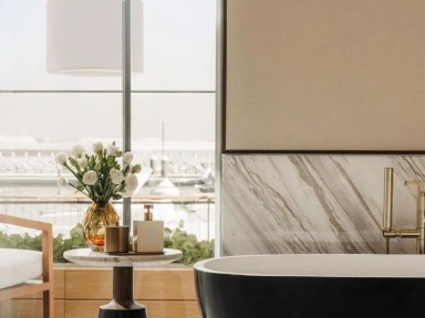 Площадь номера: 67 кв. м., вид: на пристань для яхт и на городскую панораму, кровати: 1 кровать king-size или две отдельные кровати + одна диван-кровать, размещение: 2 взрослых и 2 детей до 12 лет или 3 взрослых, частная терраса, кофе-машина Nespresso , фен Dyson , персональный мини-бар , Smart TV 65”, Акустическая система Bang and Olufsen